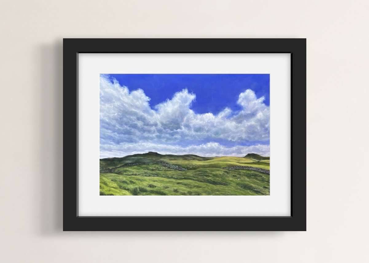 This view of the Three Peaks takes my breath away. I have walked all three separately and together, but only here have I seen them all in the same place, ( Wherneside is the little squiggle to the left, which shows how mighty and far apart they are). You approach through a winding road, with limestone pavement looming either side, which opens to this wide vista. I wanted to share the feeling of space and freedom, off being at one with the air as it rustles around you.