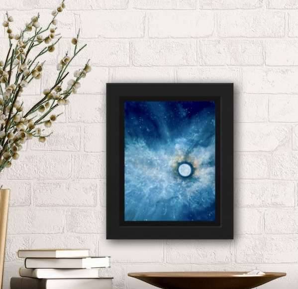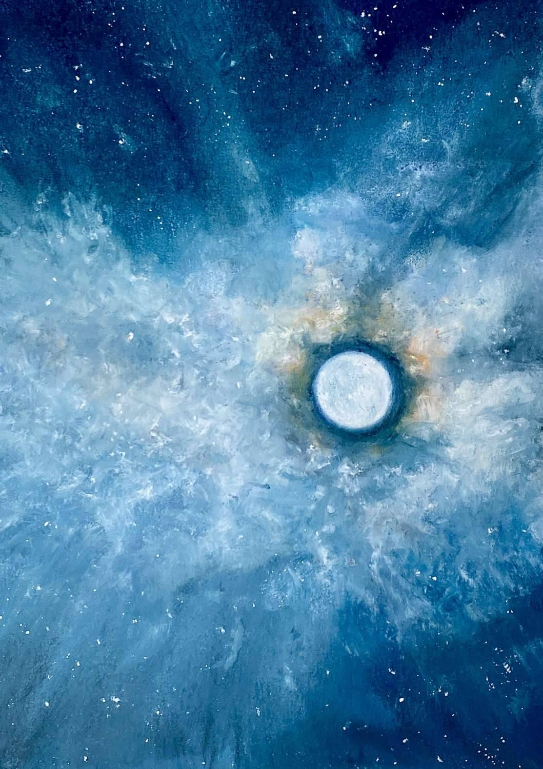 Sometimes the moon is so stunning that she takes centre stage in any painting. The sky like velvet, with sparkling stars, a magical moment.