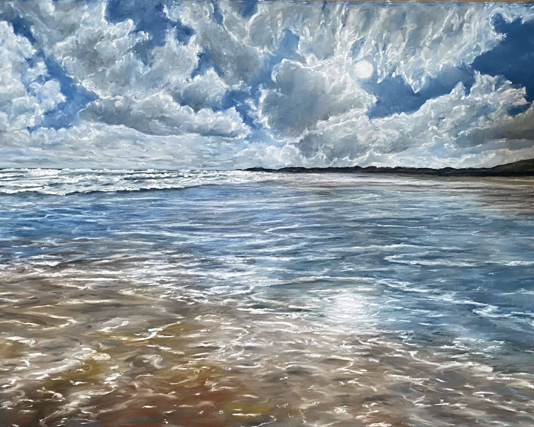 The third of three paintings, I painted after my last trip to to the Northumberland coast in October. I visited Newton by the Sea on a gusty day, the waves were wild, the sun was bright and the reflections stunning.